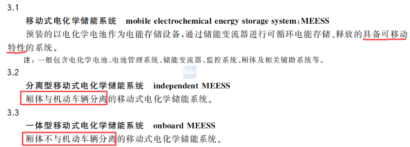 (3)《移動(dòng)式電化學(xué)儲(chǔ)能系統(tǒng)技術(shù)規(guī)范》GB∕T 36545-2023第3.1-3.3條:移動(dòng)式電化學(xué)儲(chǔ)能系統(tǒng)是具備可移動(dòng)性的系統(tǒng),分為一體型移動(dòng)式電化學(xué)儲(chǔ)能電站和分離型移動(dòng)式電化學(xué)儲(chǔ)能系統(tǒng)。